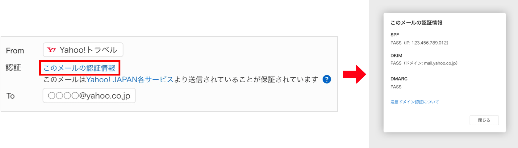 正規の送信元なのかどうかの認証(送信ドメイン認証)結果は、以下のような方法で確認できます。
