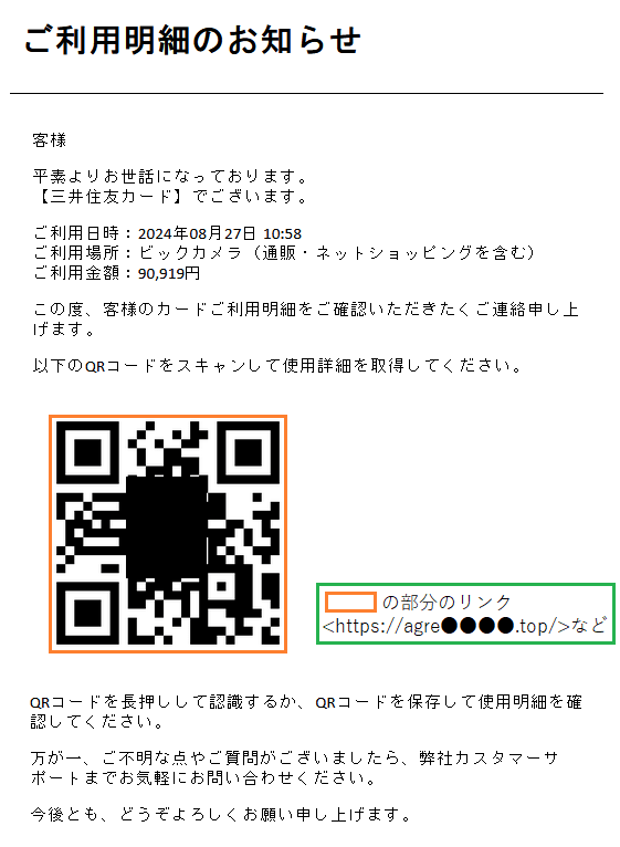 一見するともっともらしい内容になっているため、実際の利用者であればあるほど「急ぎの対応が必要だ」と焦ってしまいやすく、注意が必要です。