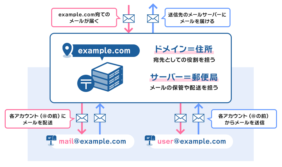 そもそも、メールは「サーバー」と「ドメイン」を紐づけることで、利用できるようになります。